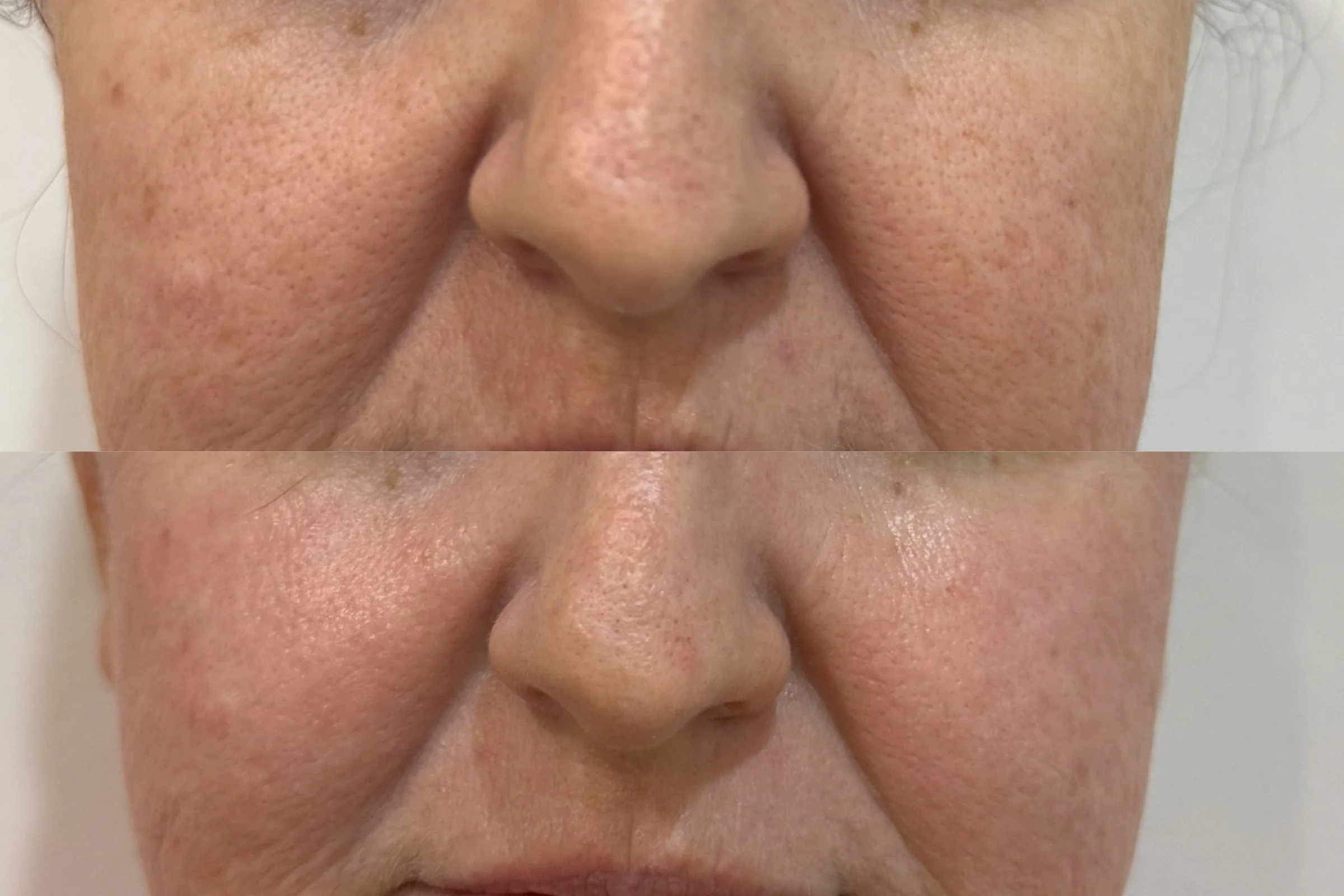 Our Coolview vascular treatment was chosen to address generalised redness, visible capillaries and vessels in the skin. Laser Genesis was layered to promote the stimulation of new collagen and elastin to brighten and improve the overall skin health.
