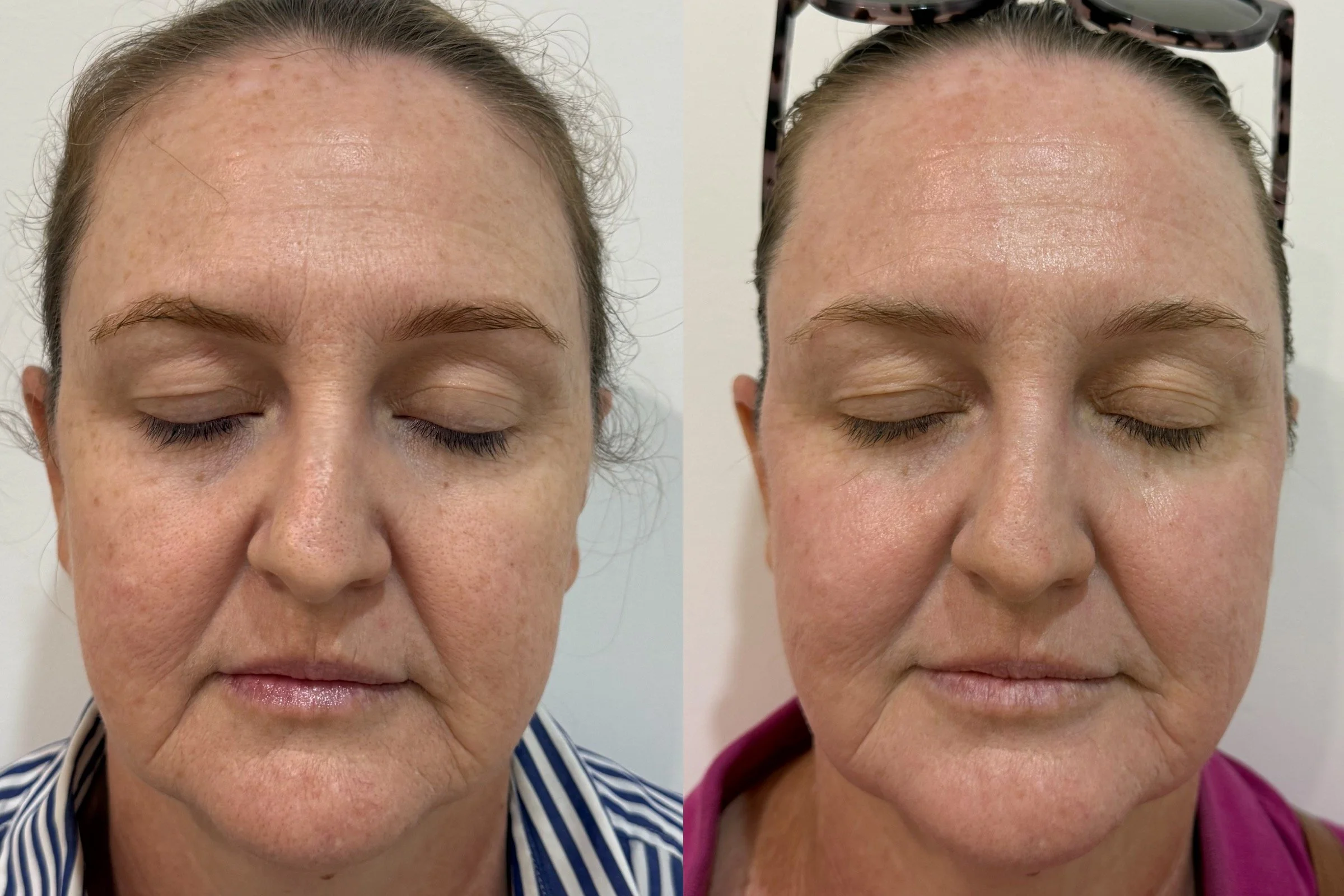 This treatment was chosen to address loss of elasticity, fine lines, pigmentation and sun damage. Both treatments were layered in one session to treat the deeper layers of the skin and also the superficial layers.